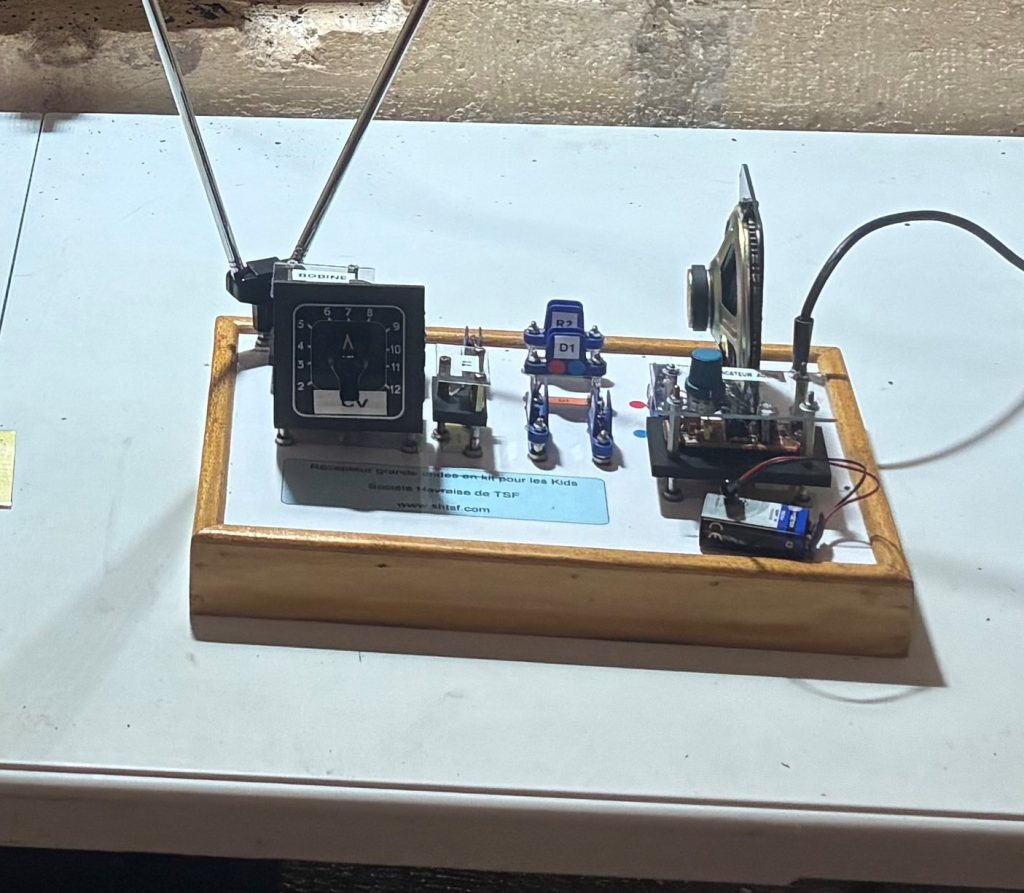 Cette année notre ami Alain F1BGI nous a confectionné 2 nouvelles animations, la construction ludique d’un récepteur radio pour écouter nos stations en phonies et la construction ludique d’un émetteur télégraphique sur la fréquence de 10 MHz que nous écoutions sur un récepteur décamétrique Yaesu FRG 7700 . Merci beaucoup Alain.