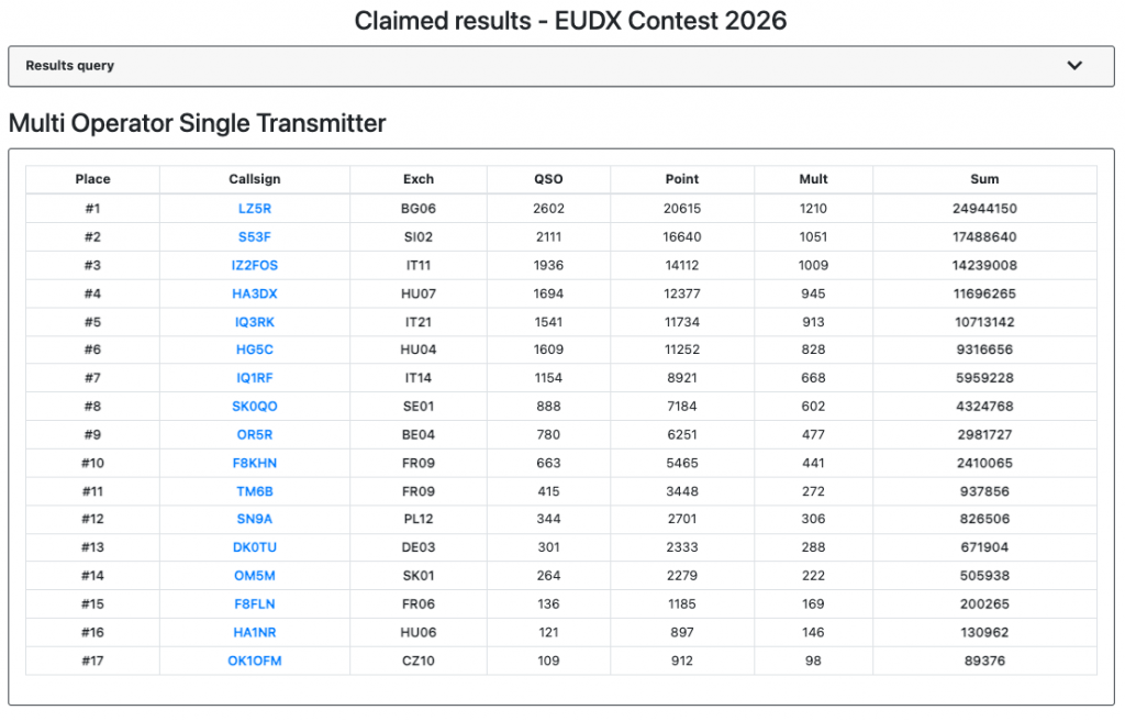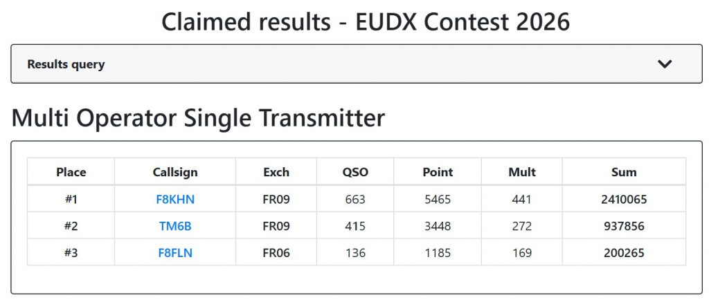 Voici notre score provisoire donné par le CONTEST ONLINE SCOREBOARD 535.400 points avec 1.062 contacts. Bravo à toute l’équipe !